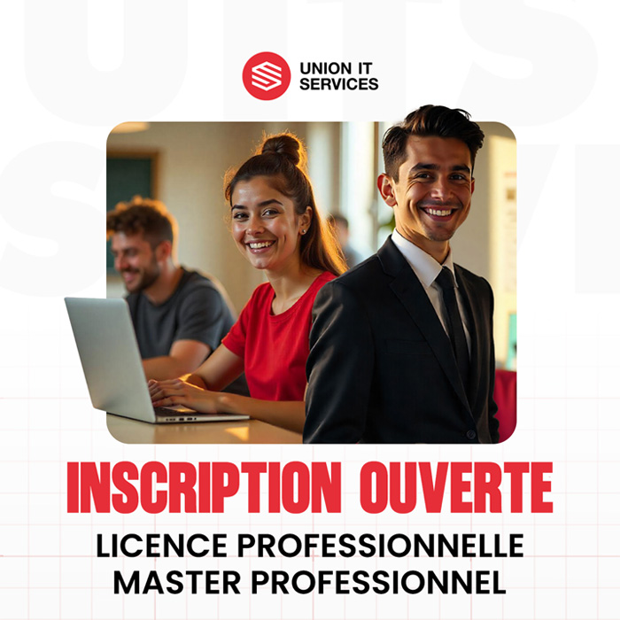 UITS S.A.R.L (Union IT Services S.A.R.L.), société spécialisée dans le domaine IT, par fournissant, intégrant et formant leurs partenaires dans les nouvelles solutions IT, propose un programme d’excellence débouchant sur des formations diplômantes en Licences Professionnelles en partenariat avec une université américaine et européennes.